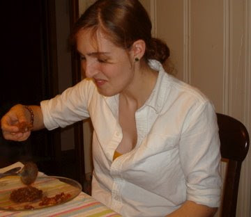 alix was skeptical but she was brave enough to try it out.  eating with her hands was not something she enjoyed and she had her wot with rice instead.