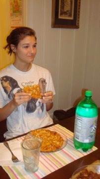 devon enjoying a pizza, she was not willing to try it out but she did have fun watching us and laughing at us as we ate it with our hands.