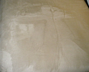 honest, we only did that one time. she wasn’t dumb enough to fall for it a second time. anyway, when i walked into the living room last night, the light was hitting the chair at the right angle and i saw an interesting pattern in the ultrasuede. look at it and see if you can identify it-it made me giggle.