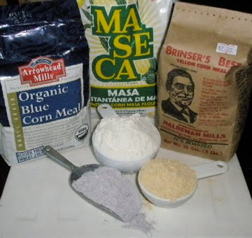in my flour collection, have a nice variety of corn meal/flour. organic blue corn meal, corn meal masa for tortillas and a roasted yellow cornmeal are just some of them. blue corn meal is one of my favorite things to bake with and i have used it in things ranging from biscotti to corn bread to a spiced caked so bread seemed like a natural choice. however, i decided to take it one step farther by combining the three together in the loaf of bread.