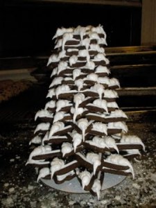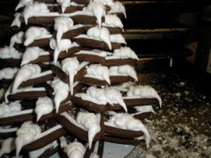 the finished tree. it is important to use a level surface and a steady hand with the icing or you may end up with trees that look like staggering drunks-rather like mine…here’s hoping that you all had a merry holiday! happy new year to all.