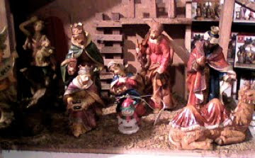 my husband the practical joker and more proof that i cannot take him shopping with me. he rearranged the manger in macy’s…lauren the snowgirl is now being showered with gifts from the three wise men while mary and joseph look on.