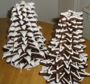 back to the daring bakers. when i saw that we would be doing a gingerbread house, i didn’t know what to say. i love to build the houses, i’ve done it a few times for competitions and even come home with a blue ribbon but i also knew i wouldn’t have the time or the energy. when i had my bakery, i stumbled upon a great set of cutters that when used would make a lovely tree that could be decorated. we sold hundreds of them! every year, i make at least a couple of them to take to kentucky. knowing my limitations and the requirements of the challenge, i decided to just make the trees. the challenge allowed for us to use gingerbread dough made from scratch, i used my own recipe which i will not post here because it is part of a book i am working on, and any template as long as we included it. my trees do not have a template since you just use the cutters.
