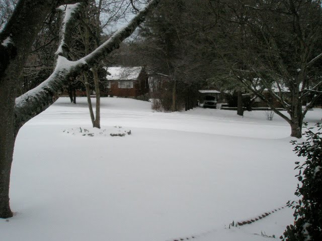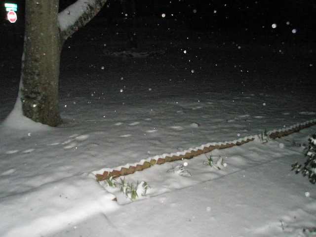 the view this morning at 8am and it is still falling! so far we have about 6 inches which may not seem like much to many but really, we just don’t get much snow here. that 6 inches is probably equal to all of the snow we have had since we moved into this house 6 years ago! if we are lucky, we will be able to get out of the house later today when some other brave nutjobs have driven around on our street and cleared a path for us-we do not have four wheel drive or a snow plow handy!