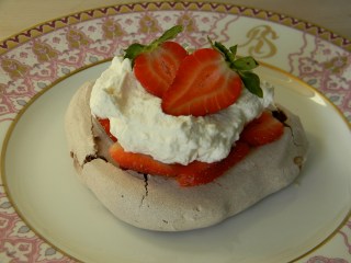 after all, it is a recent tradition to make a dinner for valentine’s day and we had three girls to serve so i made lemonade with the lemons or more accurately, pavlova with the meringues. topped with strawberries and whipped cream, they were tasty. i am not posting a recipe this week because i am not done with this one. look for me to post this again as soon as i am back in production. i wanted to have a sauce ot accompany the dessert and this was not the presentation i hoped for.