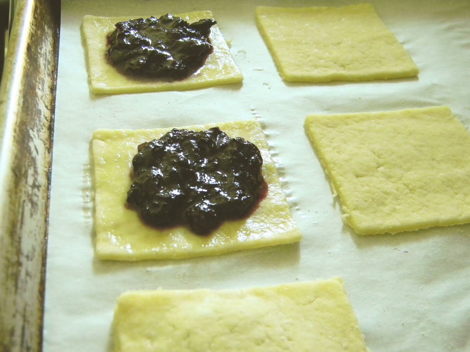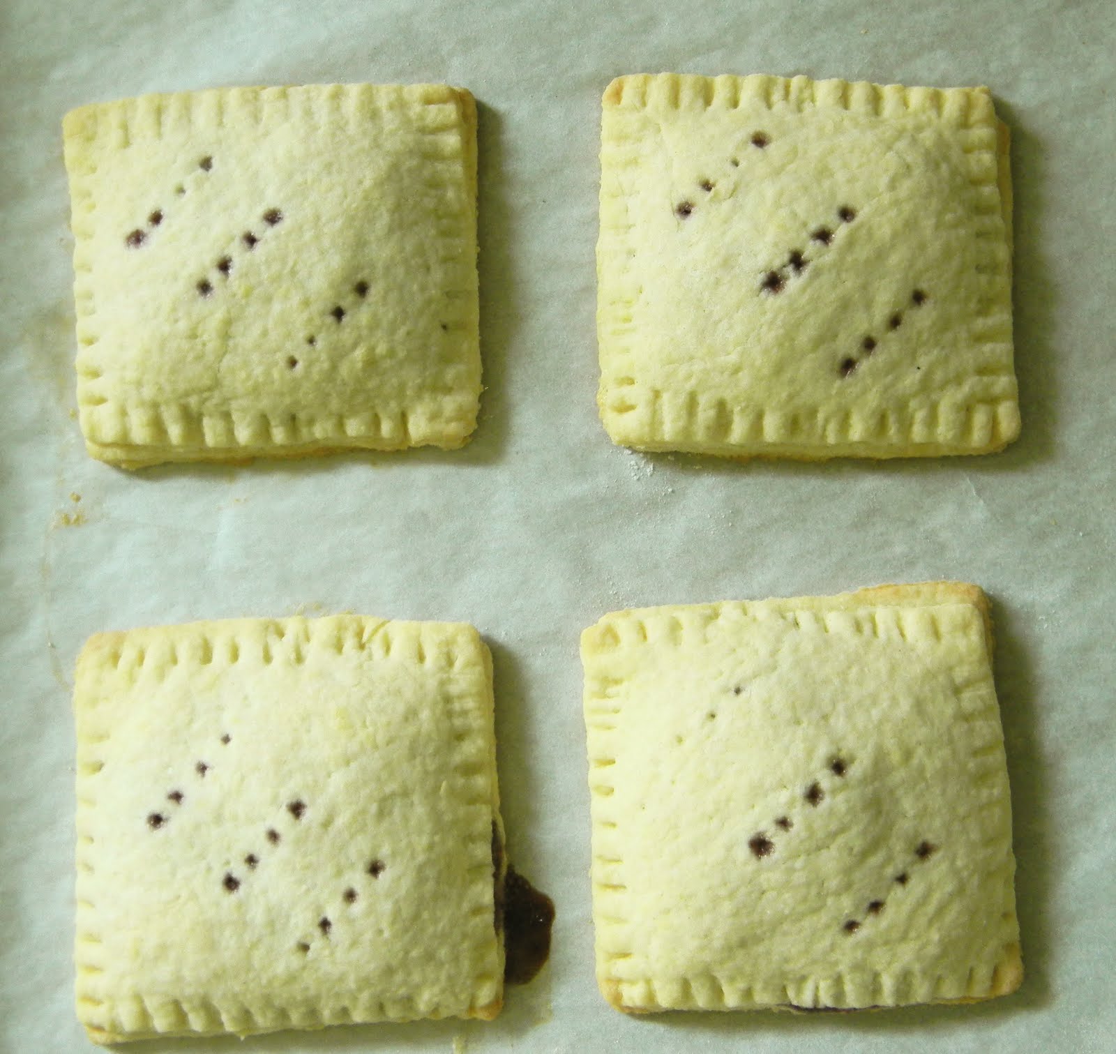 i experimented with two different doughs and settled on the second one. it is more like a tart dough and has sugar, egg and buttermilk in it. in the end, it was easy to work with-even the scraps. it held the jam without bursting and after almost a week, the toastrie dough was still tasty with a nice texture. they never had the cardboard snap of the commercially produced tarts and remained a little on the softer side but even so, everyone who ate one, reached for a second.