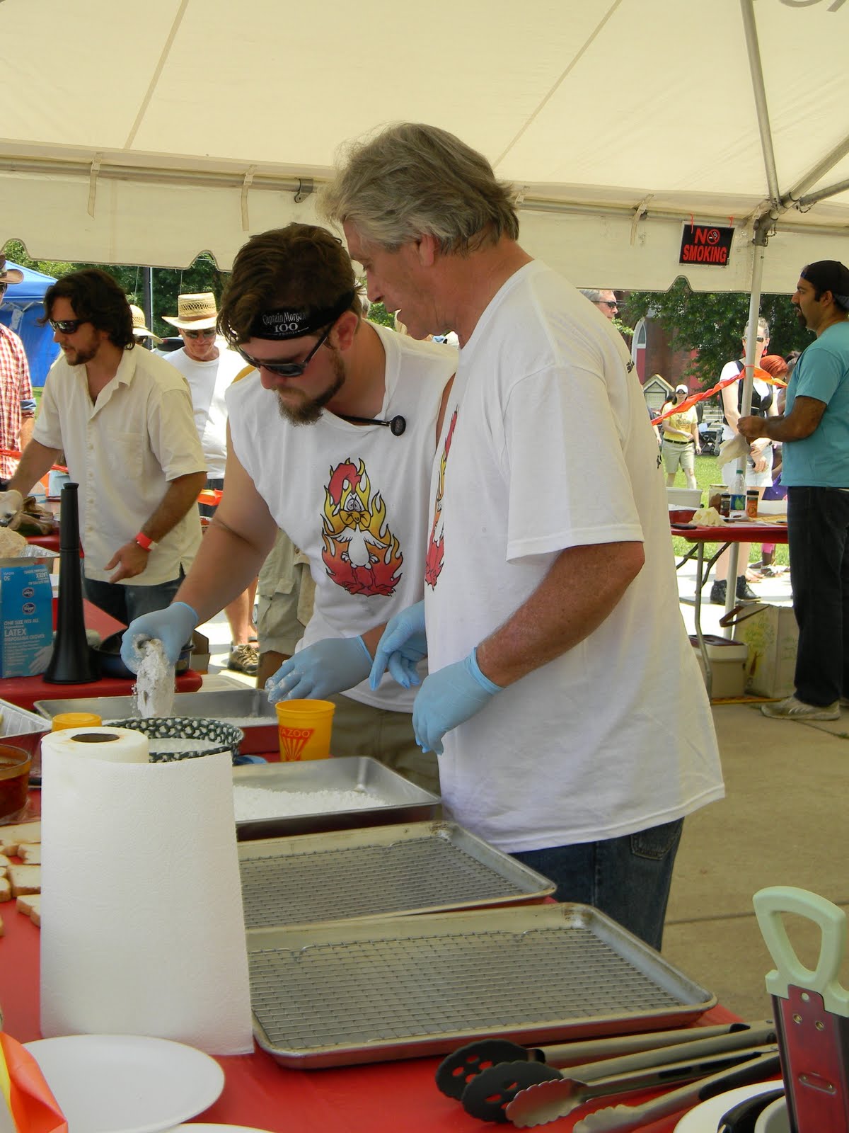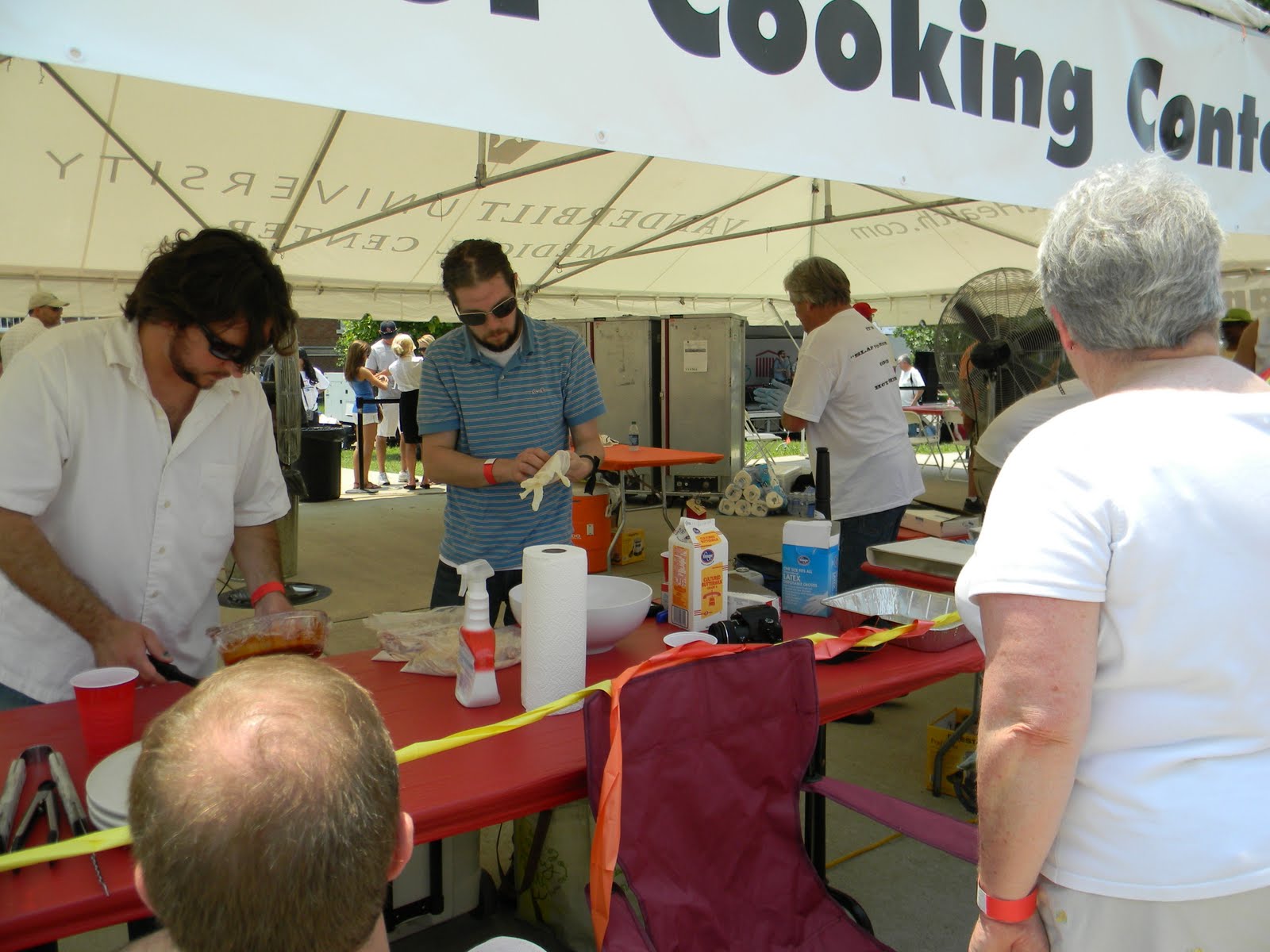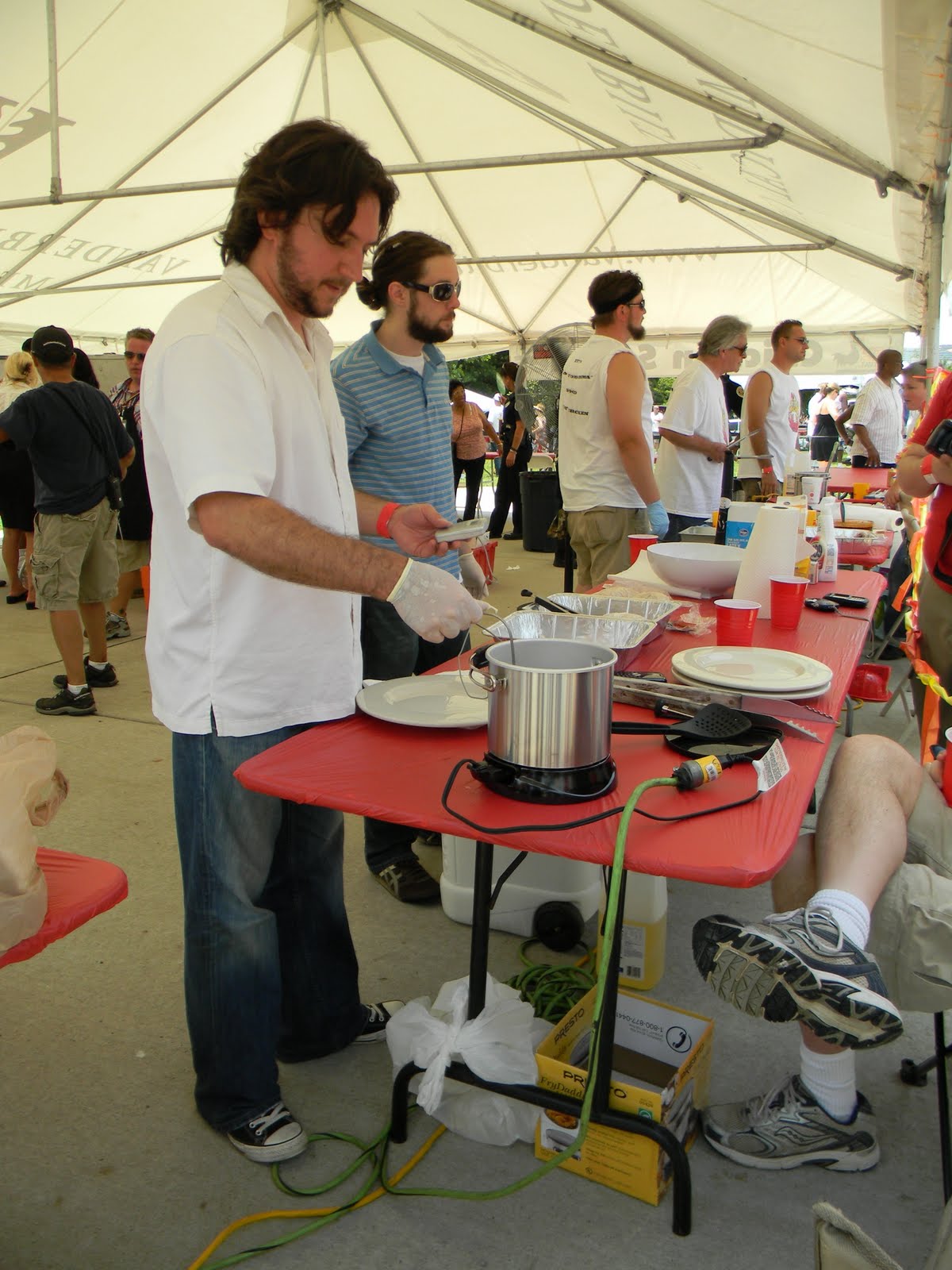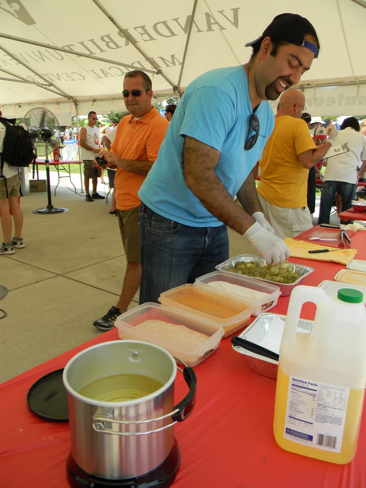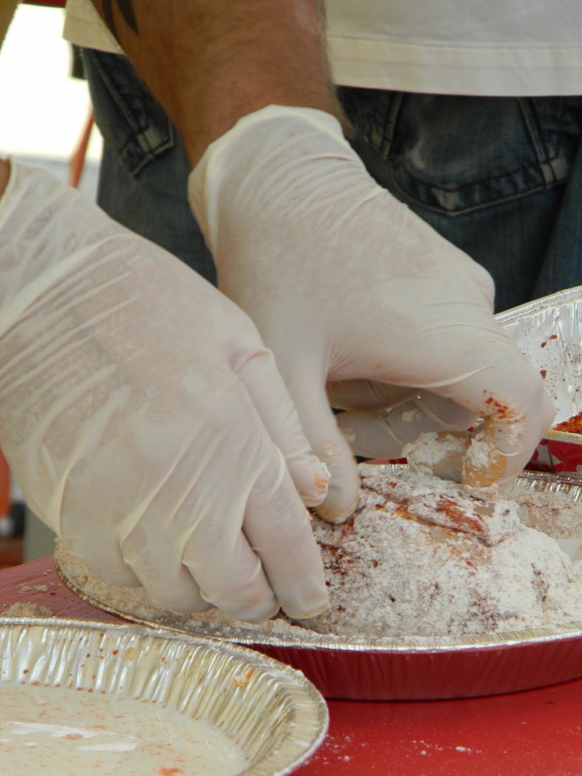 it was the fourth of july, it was hot-really hot and we headed out to the 5th annual hot chicken festival. unless you live around music city, you may not know what hot chicken is. first of all, the word hot has nothing to do with the temperature that the chicken is when it is served. it is all about the hot sauce that the chicken is dipped in after it is fried. kind of like hot wings but better. the chicken is always breaded by hand just before frying and it can either be tenders or cut chicken with bones. after the chicken is deep fried, it is dipped in a hot sauce that can merely singe your taste buds or send smoke out your ears-beware, this ain’t no sissy chicken! even the “mild”ones will challenge you so unless you have an asbestos lining your digestive tract, think twice about asking for “hot” and you just might want to bypass the “extra hot” altogether.