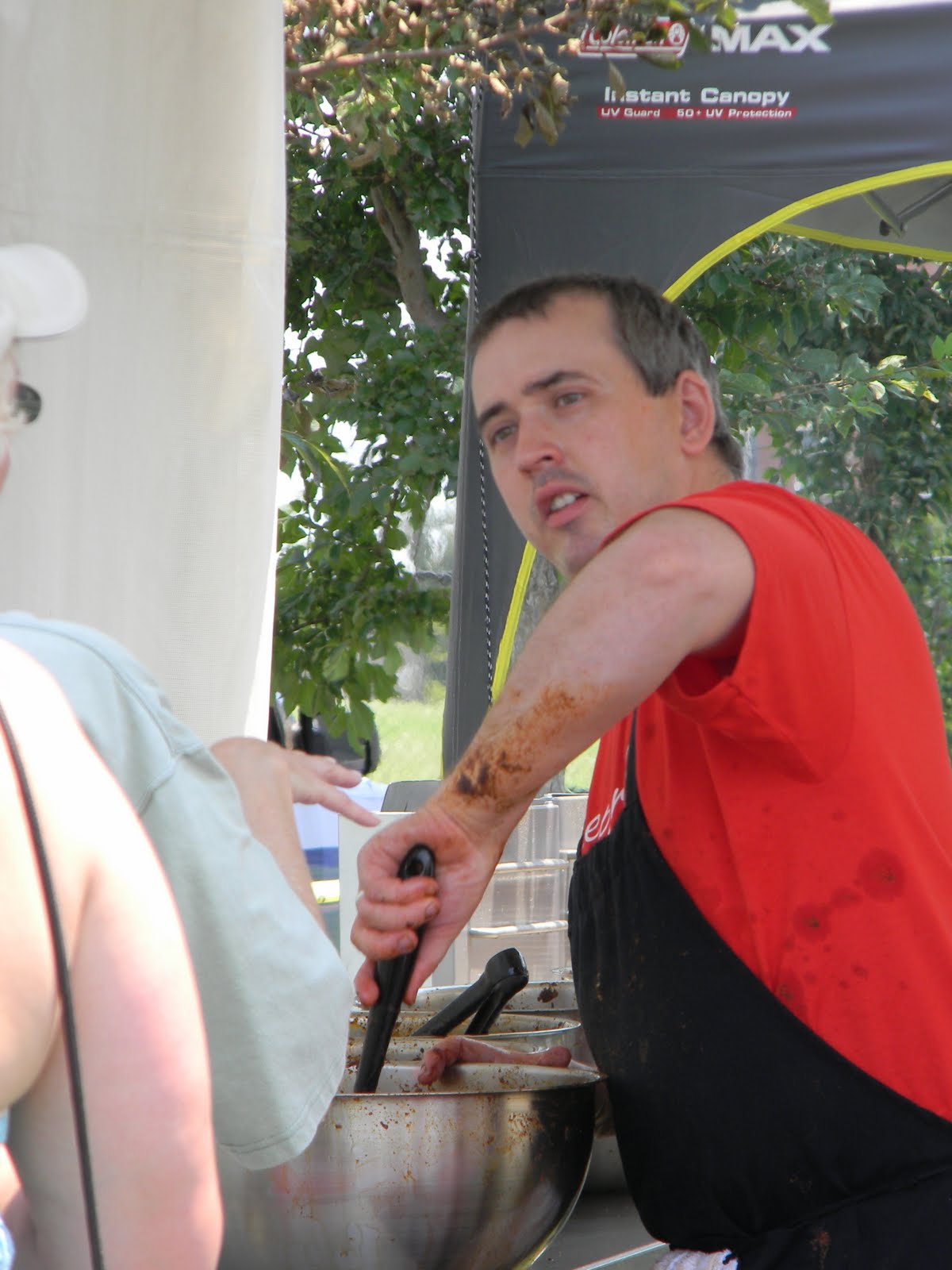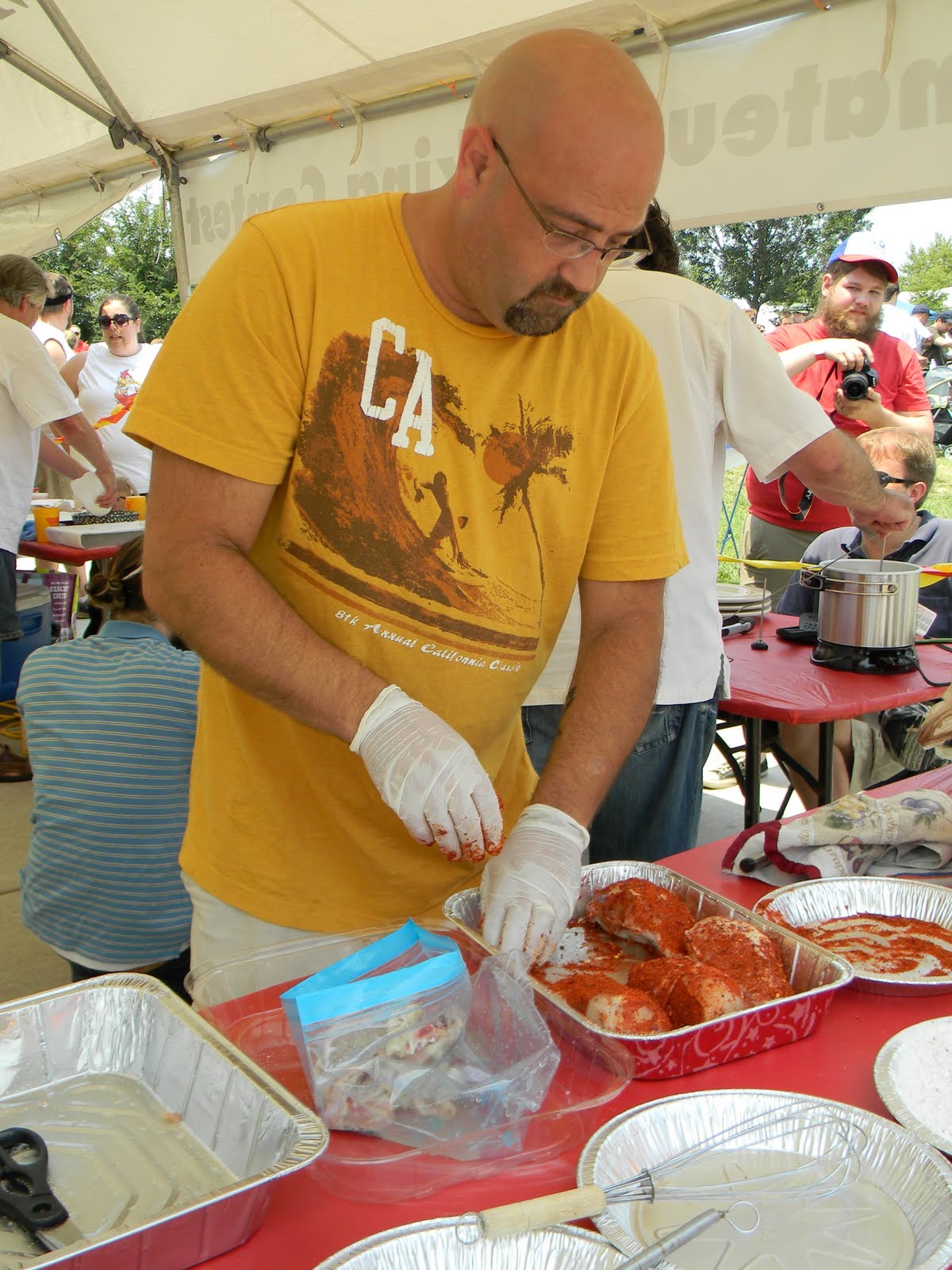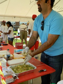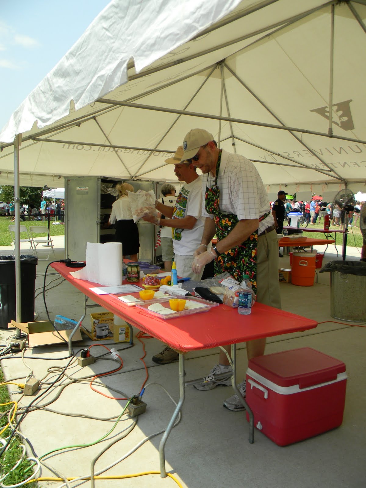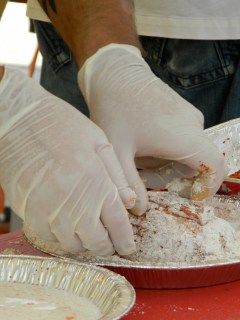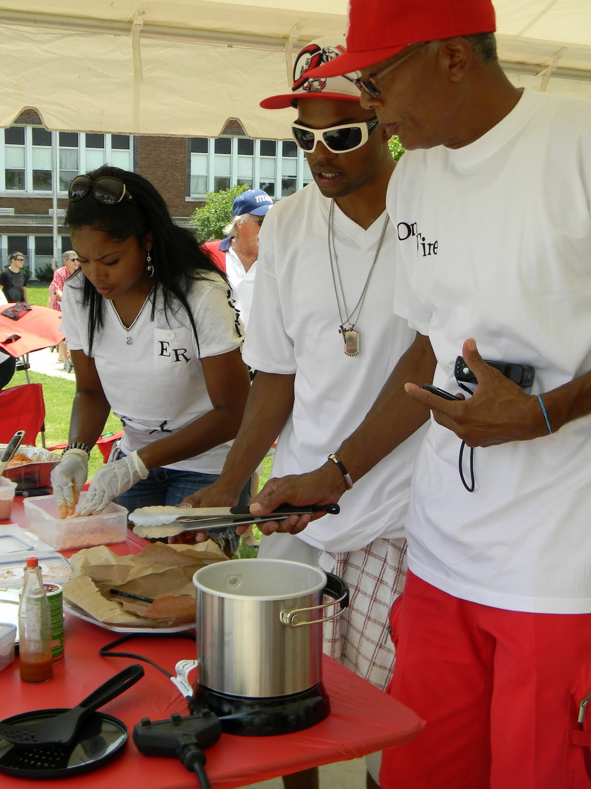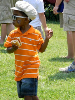 it was the fourth of july, it was hot-really hot and we headed out to the 5th annual hot chicken festival. unless you live around music city, you may not know what hot chicken is. first of all, the word hot has nothing to do with the temperature that the chicken is when it is served. it is all about the hot sauce that the chicken is dipped in after it is fried. kind of like hot wings but better. the chicken is always breaded by hand just before frying and it can either be tenders or cut chicken with bones. after the chicken is deep fried, it is dipped in a hot sauce that can merely singe your taste buds or send smoke out your ears-beware, this ain’t no sissy chicken! even the “mild”ones will challenge you so unless you have an asbestos lining your digestive tract, think twice about asking for “hot” and you just might want to bypass the “extra hot” altogether.