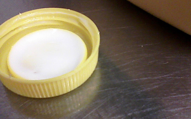 buttermilk comes in yellow jugs with yellow caps. the cap and it’s reflection on my work table.