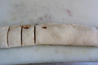 when cutting slices, i always mark the dough with a ruler and a knife first to make it easier and more consistent in size
