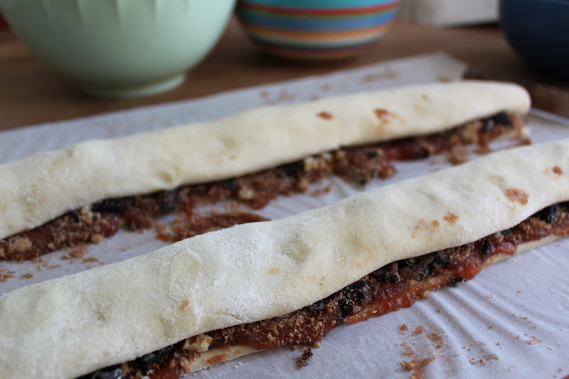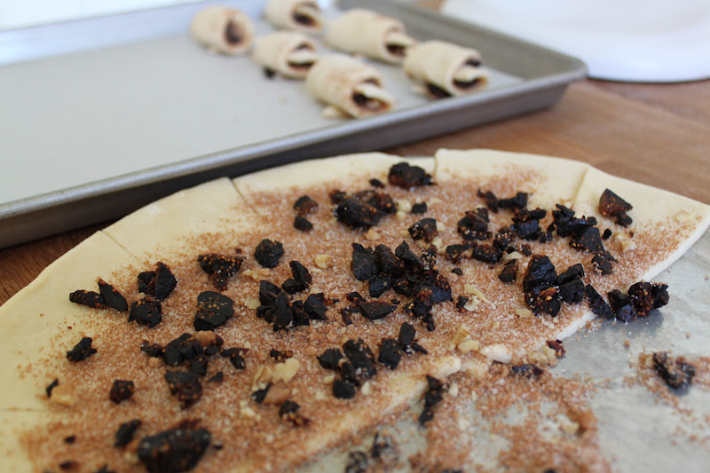 this is where the work was-gathering the ingredients and preparing them for filling the rolls of dough. i used walnuts, figs and cherries.