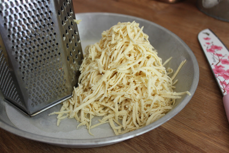 and with the blink of an eye, it is tuesday with dorie time again.  this weeks adventure, hungarian shortbread, is hosted by lynette of 1 small kitchen and cher of the not so exciting adventures of a dabbler.  shortbread, seems easy enough, right.  not according to the recipe.  the headnote warns us that shortbread can be tough to work with and that luckily for us, this easy recipe will save us.  well, i have made many batches of shortbread and while it can be tricky in a warm kitchen, i would not say it is tough to work with.  this recipe is unusual in that the dough is frozen and then grated into the pan.  hard to believe, but true.