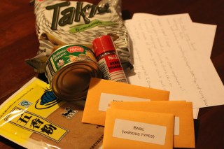 off to the international market i went. i sent her some chinese 5 spice powder because it is wonderful to bake with-try it in any recipe calling for cinnamon. japanese pepper, nanami togarashi is a red pepper blend that i love to sprinkle on stir fries. thai green curry is a favorite dish of mine too so not only did i send her a can of paste, i met the written requirement by writing up my favorite curry sauce recipe so that she could try it out. takis, guacamole flavored chips are the bomb! one of my guilty pleasures. and to round it out, seeds for herbs and flowers because i think everybody should try and grow their own food!