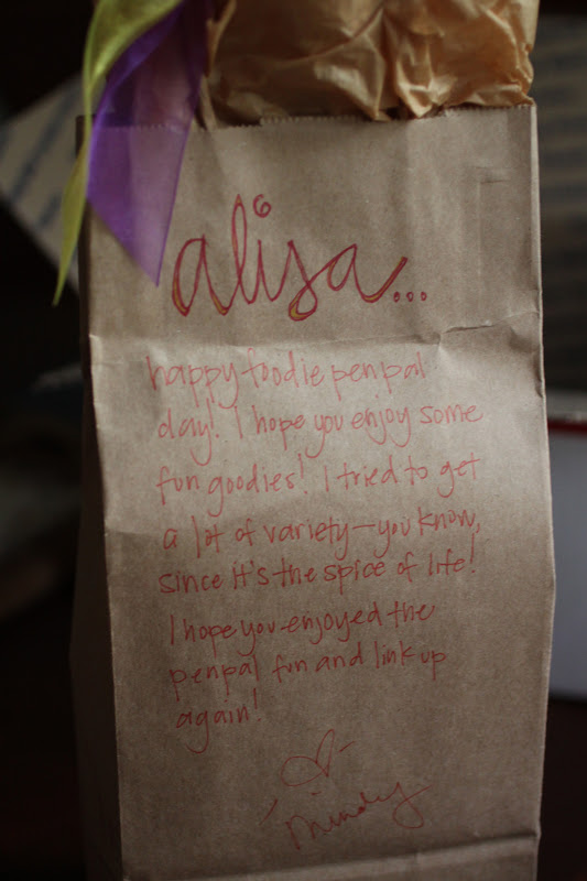 the hardest part about sending a package of food to a stranger-because we are all strangers at first, is that you never know what they might like. we must be mindful of the obvious such as allergies, aversions or religious requirements and are required to ask that before we shop for goodies. luckily for me, theresa of a spoonful of sunshine, my partner who would be receiving the box had no issues and i was able to send here what ever i wanted.