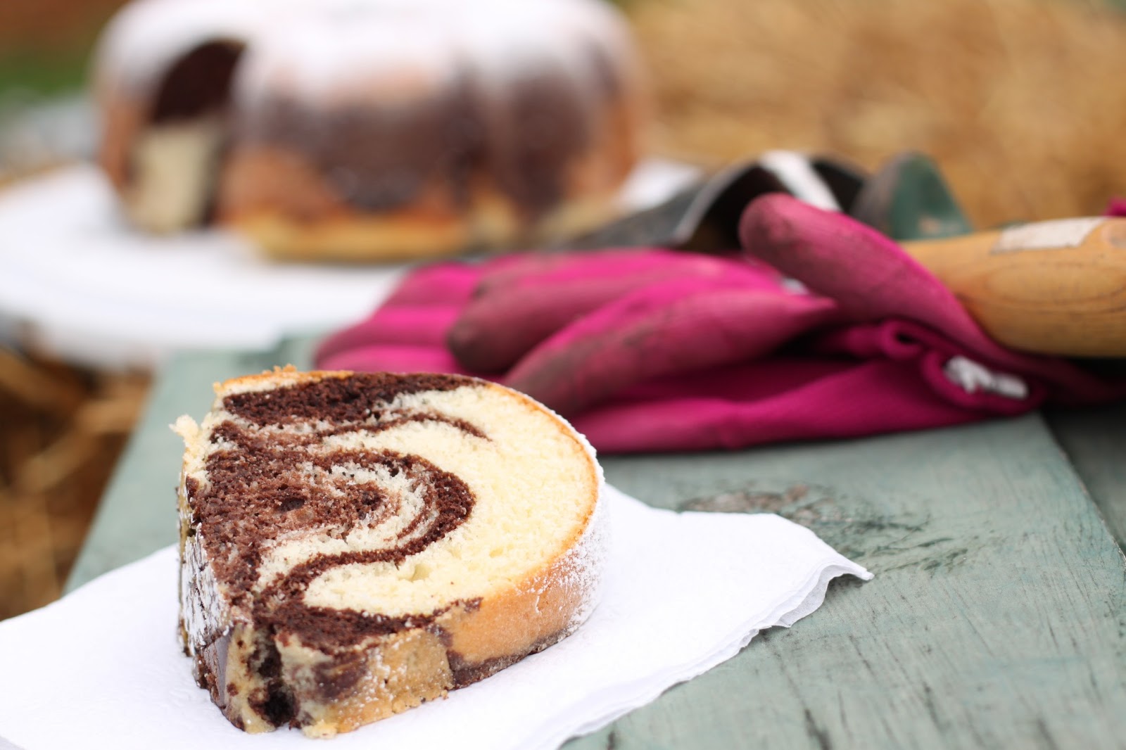 to mix the batter, cream the butter with the sugar, vanilla and salt until it is light and fluffy, about 3-5 minutes. add the eggs one at a time and mix until combined, scrape the bowl as you go. sift the cake flour and the baking powder over the top of the batter. fold this a couple times and then sprinkle the buttermilk over the top of the batter. fold the batter together until it is just combined. remove 2 cups of the batter and stir it into the chocolate paste. place dollops of batter into the prepared pan, alternating between dark and light. using a skewer or thin knife, carefully swirl the batters by dragging it through and stirring it occasionally. be careful not to go overboard or the pattern will not be visible after baking. bake until a pick inserted into the cake comes out clean, about 45 minutes. allow the cake to cool in the pan for about 20 minutes. turn the cake out onto a serving plate and allow it to finish cooling.