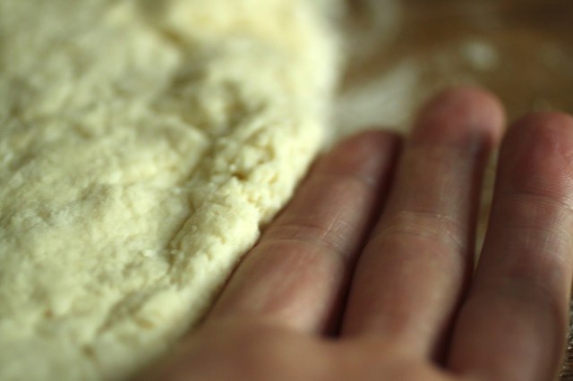 pat it out, don’t roll it out. the less your dough gets worked, the more tender and flaky it is. judge the thickness by laying your fingers next to the dough; it should be at least as thick as your fingers for tall biscuits.