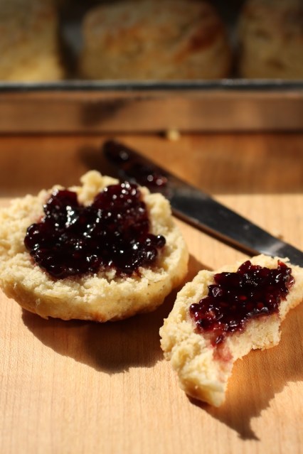 baking a cake to take to the garden each sunday morning can get a little boring. every now and then, i make something different. soda bread, scones, muffins, whatever; anything but a cake will be fine for those days. when the blackberries in the garden were at their peak, i picked six pounds in one morning. after taking them home, i cooked up a batch of blackberry jam. fresh jam meant i would need biscuits, lots of biscuits to take to the garden in the morning.