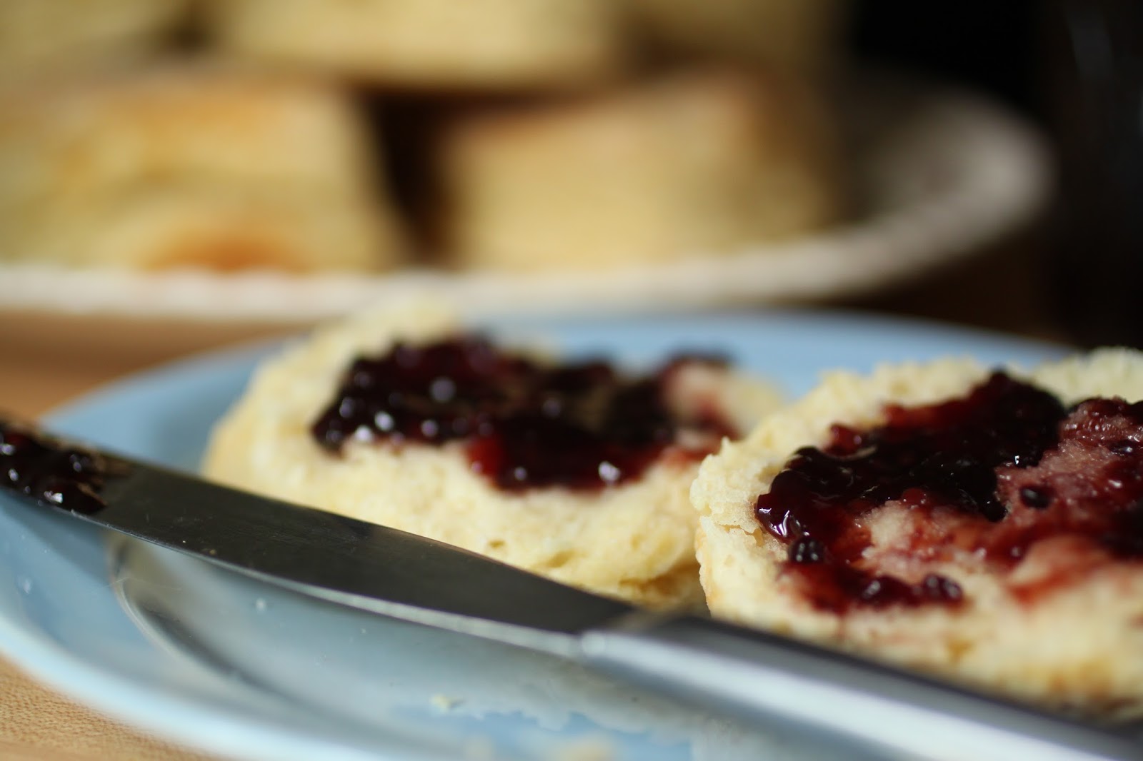 baking a cake to take to the garden each sunday morning can get a little boring. every now and then, i make something different. soda bread, scones, muffins, whatever; anything but a cake will be fine for those days. when the blackberries in the garden were at their peak, i picked six pounds in one morning. after taking them home, i cooked up a batch of blackberry jam. fresh jam meant i would need biscuits, lots of biscuits to take to the garden in the morning.