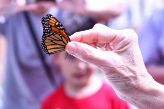 did you know that it is very easy to determine the sex of a monarch butterfly? well, it really is, by gently splaying the wings open, a five year old was quick to tell me that this was a male. how did he know that? by the single large black spot on each of the wings. this guy went back into the aquarium until it warmed up and then they were going to let him fly off. and with any luck, he will make it to the santuary in mexico.