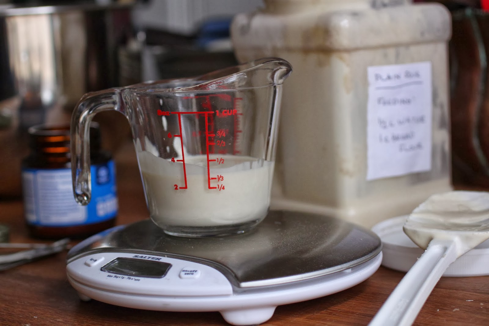 as a starter is fed and used, it needs to be replaced.  an easy way to do this is to measure your flour and pour it into a small bowl.  add your water and stir to form a thick dough.