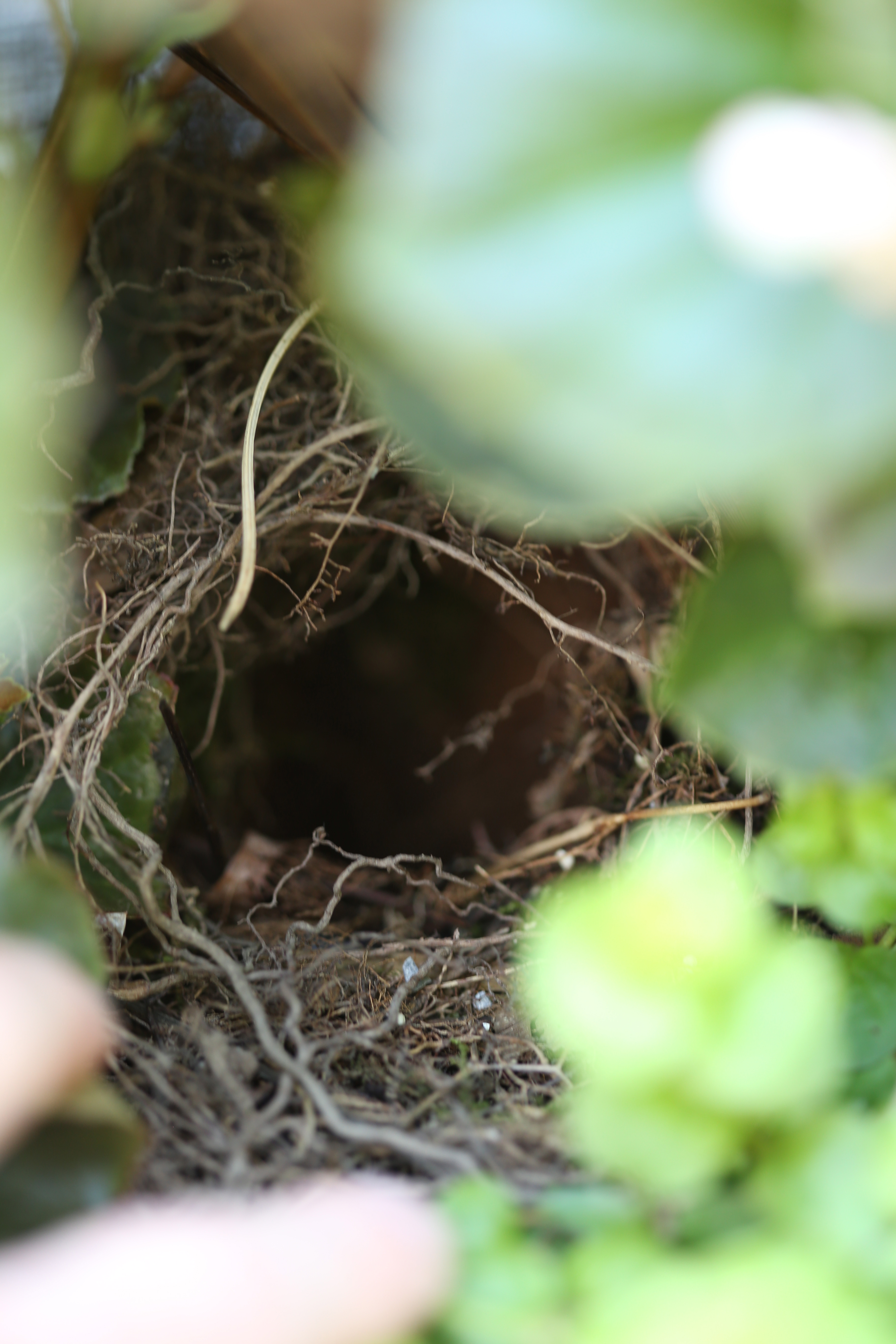 At first glance, the nest is not noticeable and that is good for the wrens but in truth, it makes watering the box a little bit of a challenge.
