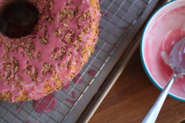 Ganache: Place 6 ounces of bittersweet chocolate into a heat proof bowl and set it over a pot of nearly simmering water to melt. In a small pot, heat(don’t boil, just heat it to help melt the chocolate) 3 tablespoons of half and half with 2 tablespoons of booze (I used Pennington’s Strawberry Rye but you can use what you like-or just use more half and half). Add the heated half and half and whisk until smooth. Let it sit until it has the consistency of mayonnaise.