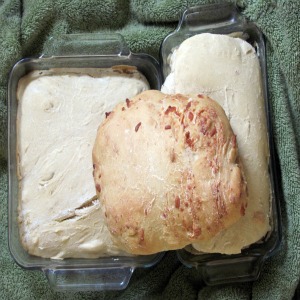 remember what i said about the kitchen being cold? well, i do not have a gas range in my kitchen and i cannot use the heat of a pilot light to rise bread. however, my oven does have a light in it and it is the perfect place to rise a bowl of dough. since it is in the closed oven, there are no drafts and the light quickly heats up the space.