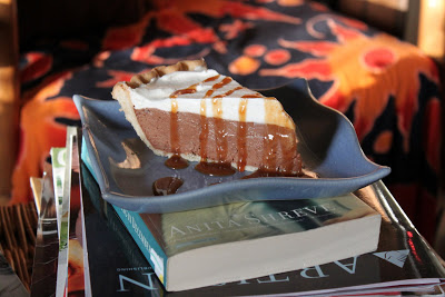 chocolate mousse pie in a coconut crust with a drunken banana caramel sauce-serves 10