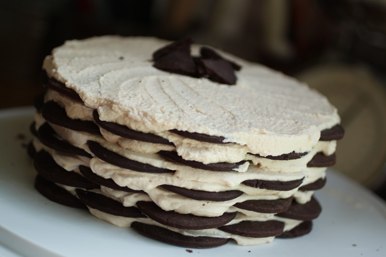 to make the mousse filling, plan on at least 2 hours. the base for the filling must cool before the whipped cream can be added. it is possible to make the filling base and while it cools, tackle the task of rolling and baking the crust.