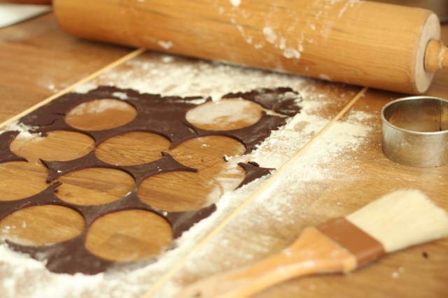 place the flour, powdered sugar, baking powder and salt into the bowl of a food processor. pulse a few times to combine. sprinkle the butter cubes over the mixture and pulse until it resembles coarse meal. add 3 tablespoons of coconut milk and pulse until the mixture comes together and forms a soft dough-only add the extra tablespoon of coconut milk if it seems dry and does not come together. form the dough into a disk and chill it for a few hours or overnight. can also be made in advance and frozen for up to a month. allow the dough to come to room temp before rolling out
