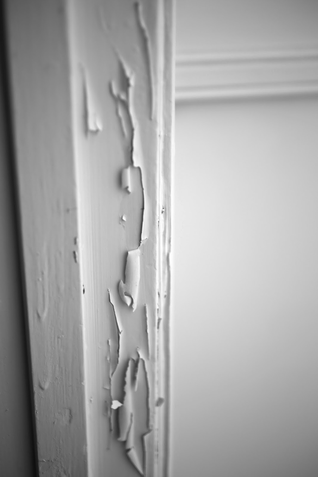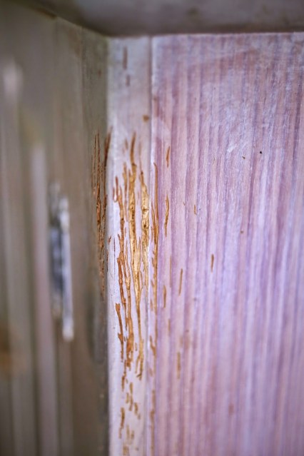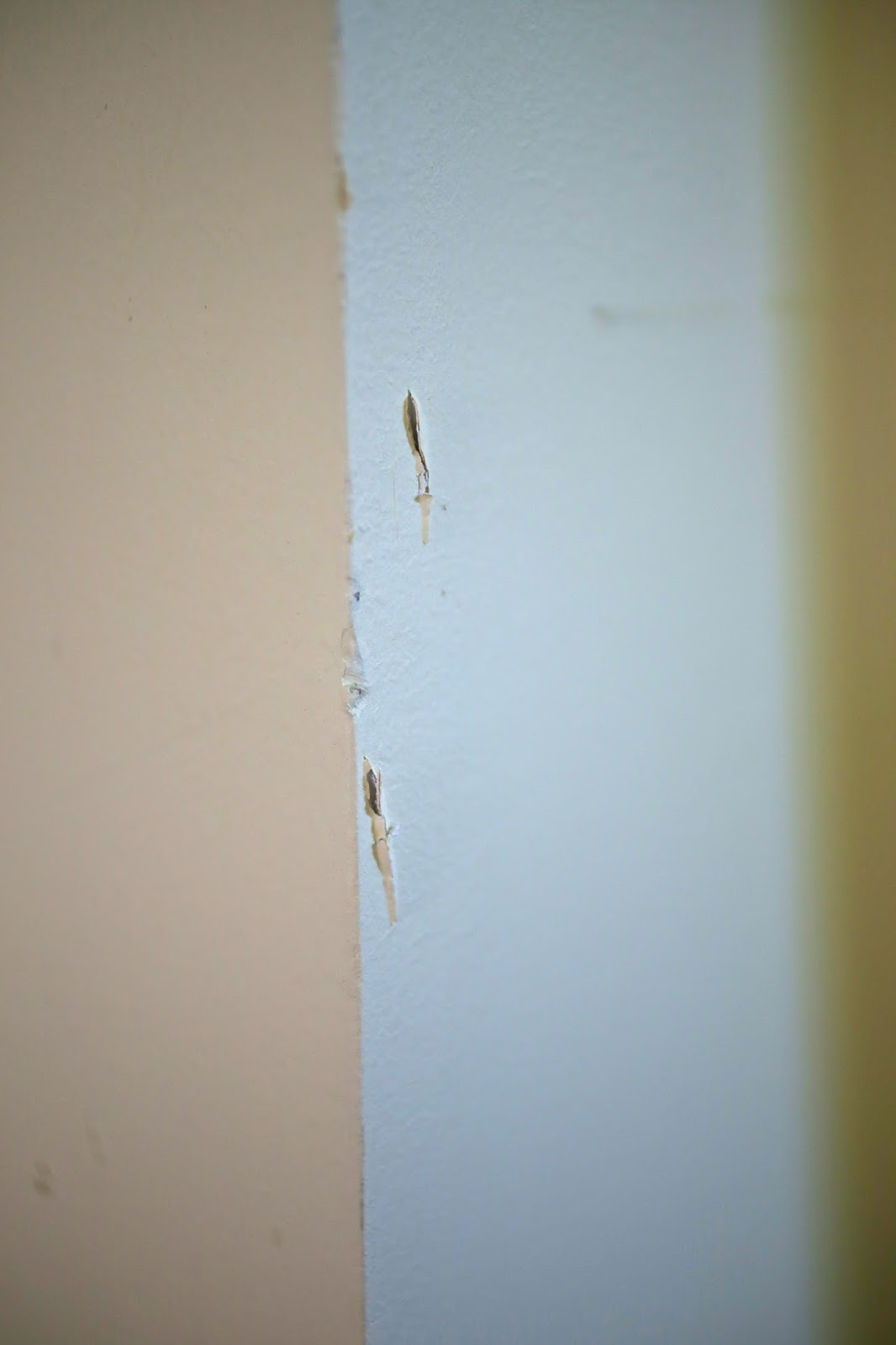 This is the door way to the bathroom. He made quick work of the new paint on the jamb.