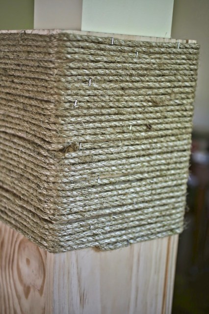 If we were going to live together successfully in this new home, I needed to give him something to call his own for sharpening his claws. My decision was to build a box that would go around one of the support columns and then to cover it with a natural fiber rope to mimic the rough texture of the tree bark he was accustomed to.