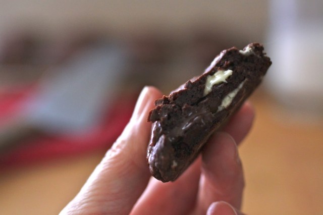 these cookies are somewhere between a cookie and a brownie making this recipe  worth the pound of chocolate it calls for.  but don’t let that stop you from adding extra chunks-white, milk or dark.  they are best when warm so don’t hesitate to reheat the leftovers in the oven for a minute or two.  be warned, they are addictive.