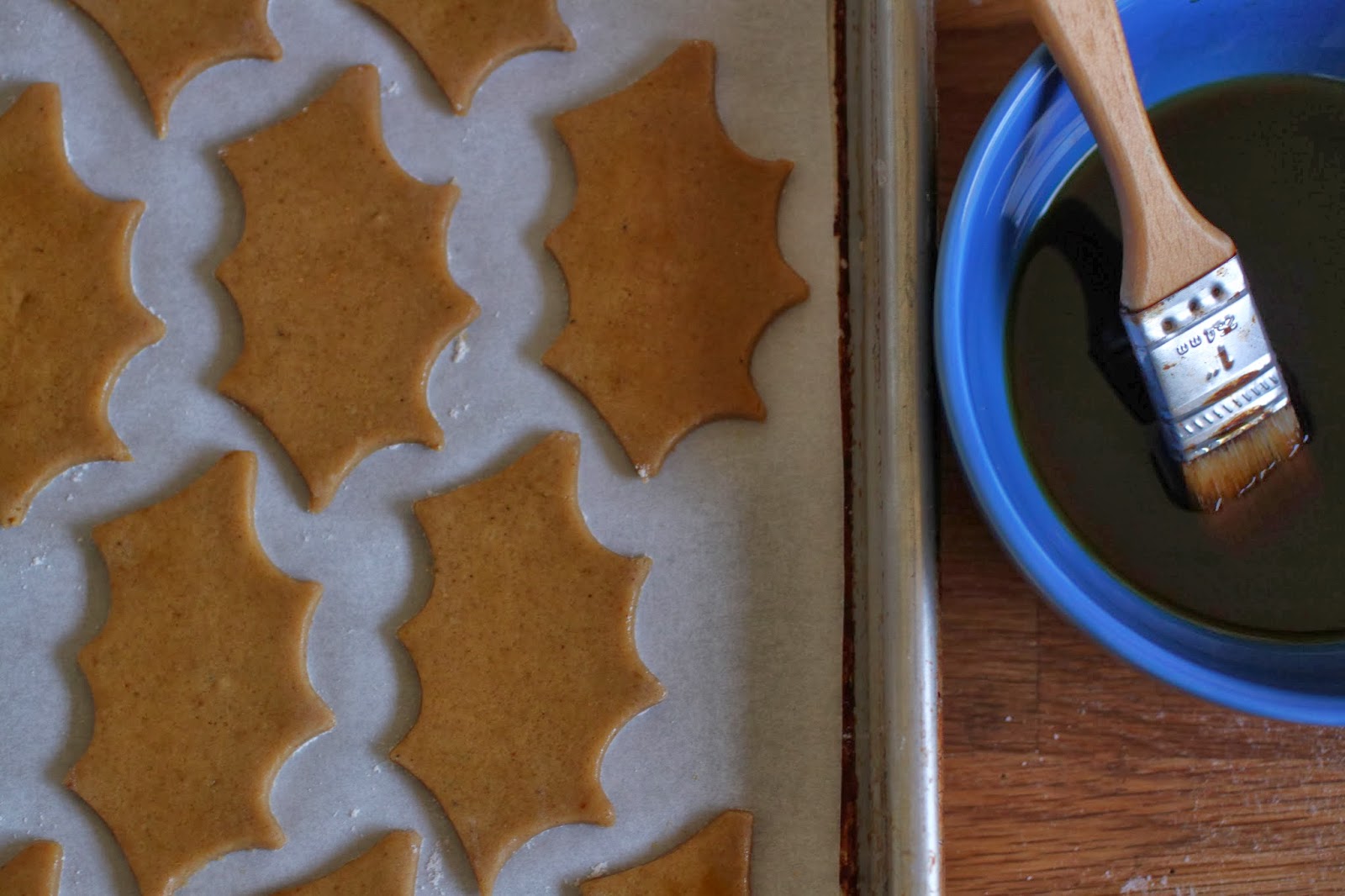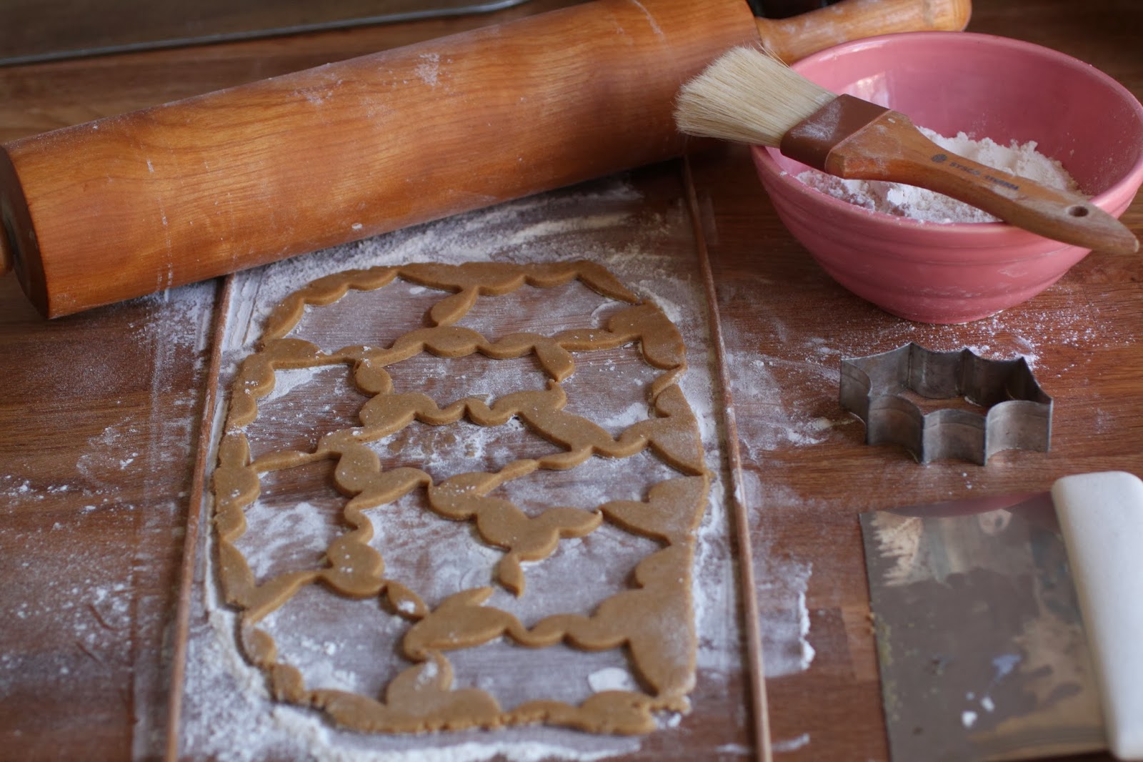to roll the dough, refer to this previous post which illustrates the use of dowels.  roll the dough, cut out the leaves and transfer them to the prepared trays.  bake the cookies for about 14-16 minutes.  the cookies should be lightly browned around the edges.  allow the cookies to cool completely, store air tight.