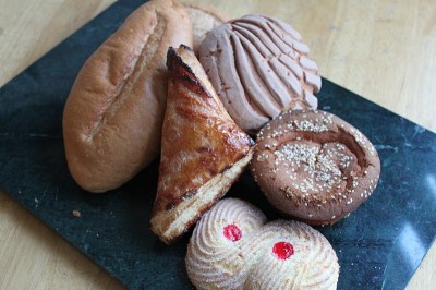 not bad for less than $5 dollars.  from the left:  bolillo(i bought 2 but the other is missing…), concha, quesadilla, butter cookie(that tasted a little like coconut to me) and a cheese turnover.