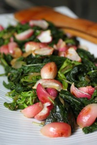 roasted radishes with wilted greens