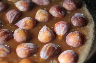 since this would be the last cake i could bake in my old faithful oven, mr. kenmore, i decided to go all out. not only did i use honey from our bees, i picked figs from our tree. for mr. kenmore’s last stand, he would bake a fig upside down cake. the figs are cut in half and laid cut side down in the syrup.