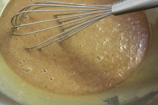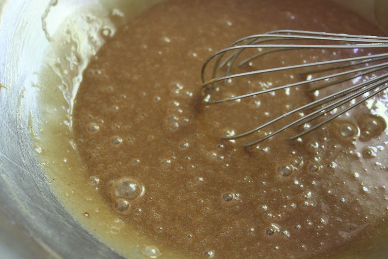 to create the emulsion, the eggs need to be added carefully so only add them one at a time and whisk each one in completely. scrape the bowl as you go. this is with one egg added
