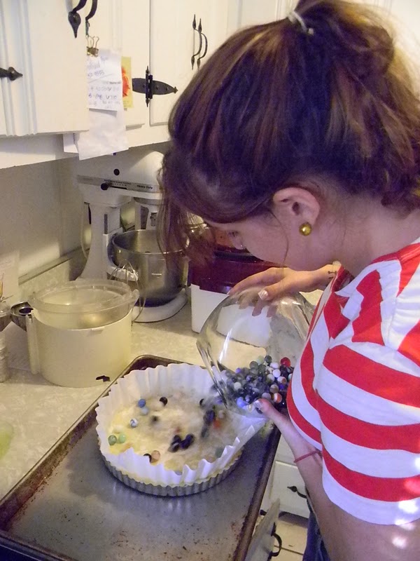 we quickly mixed up a batch of tart dough using the food processor and alix pressed it into the pan with her fingers-no rolling pin required!  be sure to use a tart pan with a removable bottom to make cutting serving the easy.