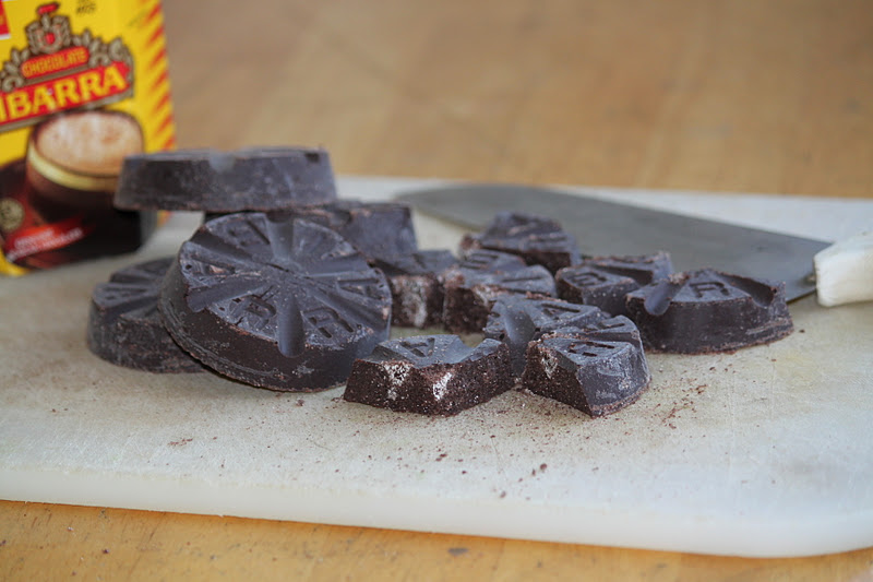 the chocolate is flavored with cinnamon and almonds and is rather grainy in appearance due to the sugar crystals.  ibarra is meant to be used for hot chocolate style drinks but it has long been a favorite of ours for cooking and baking.  my husband will drop a puck into a pot of chili and i have favored it blended with bittersweet chocolate to dip biscotti in, specifically my blue corn pecan biscotti.