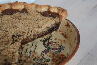 the inspiration for this pie came from my job.  every day, or at least it seems like every day, i partially bake pie shells for use in my pie recipes.  to do this, i line each pie shell with a restaurant sized coffee filter and fill that with pinto beans.  the beans act as a weight and keep the crust from puffing up.  the running joke is that the bean pies must be popular since i bake so many…yes, those are crickets chirping-i don’t find the joke very funny either; after hearing it on a nearly daily basis for 7 years, can you blame me?  so anyway, what was funny though was the day one of my latino coworkers had the realization that if she bakes those bean pies every day, they must taste good-he then proceeded to taste some of the beans.  did i mention that i reuse the beans, a lot, until they stink so bad that i replace them?  we never did talk about those beans he tasted and trust me, he never tasted another.  but anyway, i came across a recipe for navy bean pie in an old farm journal cookbook and decided to give it a try but not tell anyone what was in the filling.