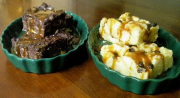 for the truly decadent-bread pudding, loveless style. what is that? well, at the loveless when we close at the end of the night, there are always a bunch of biscuits leftover. it is our policy to never run out before we close so that everyone eating has a chance to eat their fill of fresh hot biscuits. it seems like such a waste to toss them out but let’s be honest, cold biscuits taste awful! rather than toss them, i occasionally collect them and make a pan (or two) of bread pudding and it is served warm with a drizzle of drunken caramel( i can hear some groans and even a gasp or two, not the drunk thing again!!!). recently, i was faced with a small mountain of stale brownies that had been leftover from a catering order and once again, i hated to waste them. this thought occurred to me: since i knew that making a chocolate custard for a bread pudding was tricky since they tend to layer upon baking(meaning that the chocolate can settle to the bottom of the dish and the top of the custard is a little lacking and light on the chocolate) why not try making it chocolate by using brownies instead of the chocolate custard…let’s just say this, the possums in the garden will not be feasting on brownie bread pudding and neither will the neighbors. we may be waddling around for a while though.