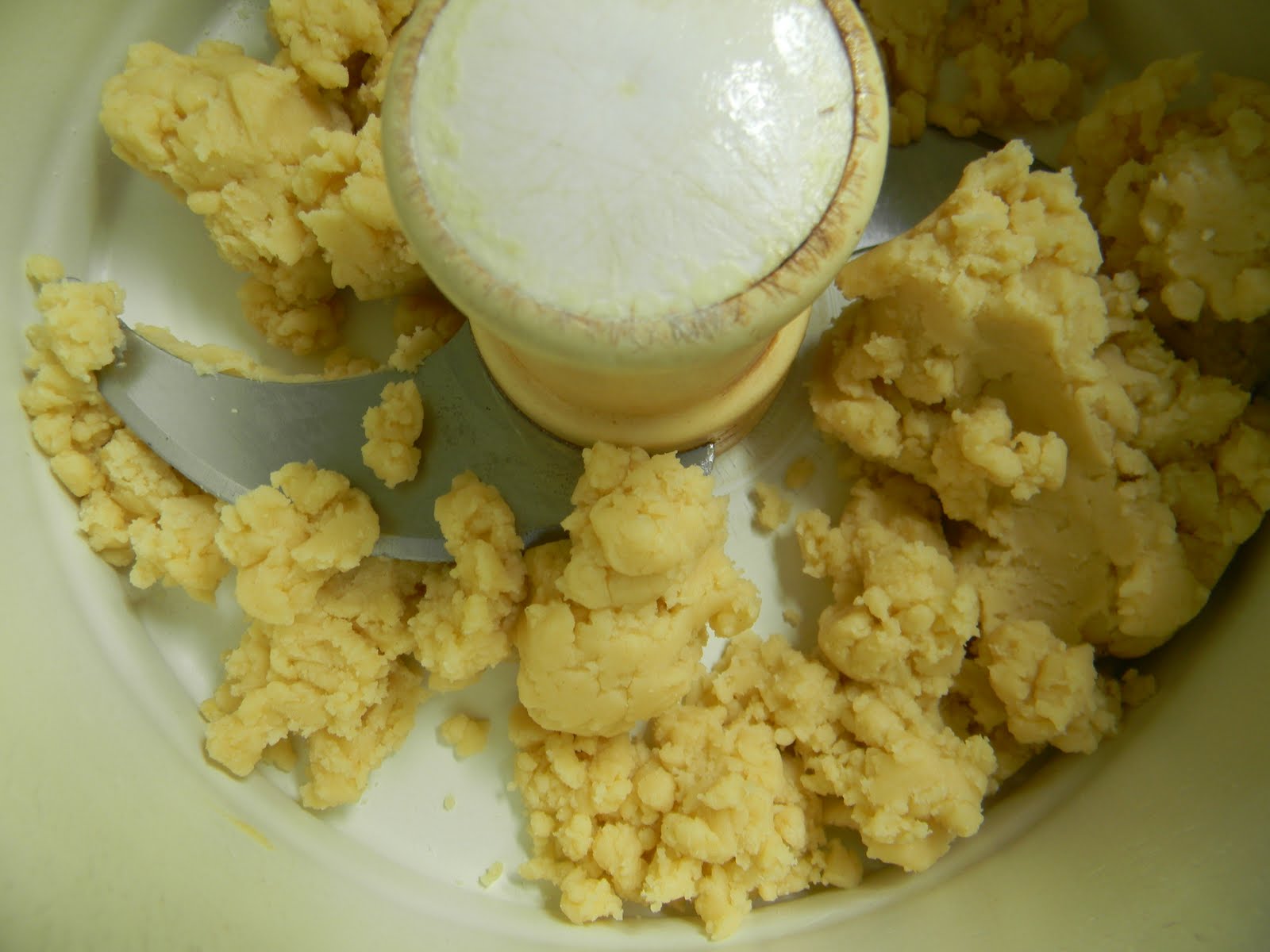 the simplest dough in the world!!! flour, powdered sugar and butter are pulsed in a food processor until they resemble a coarse meal. an egg yolk is added and the dough is pulsed until it comes together.