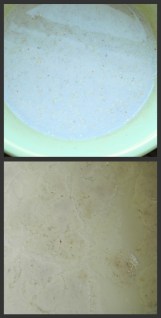 | the milk starter at the beginning on top and fully developed on the bottom |