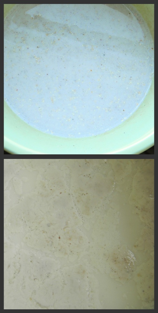 heat the milk but it is not necessary to get it hot, stir in the remaining ingredients. pcover the bowl and place it somewhere warm-again i used m oven for this step. let it rise until it starts to get bubbly-the recipe states this will happen in 6-7 hours, i let mine go almost 24 hours to get it bubbly.