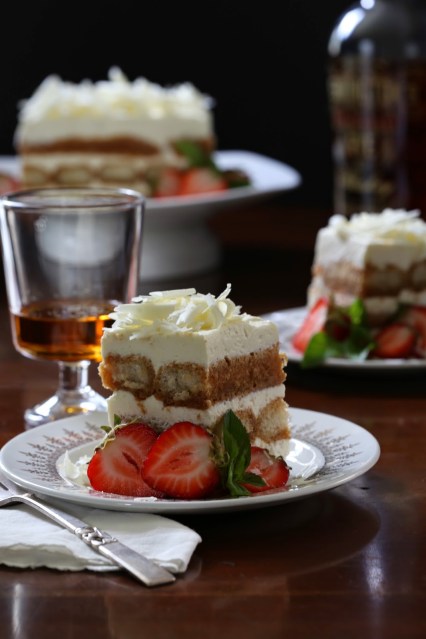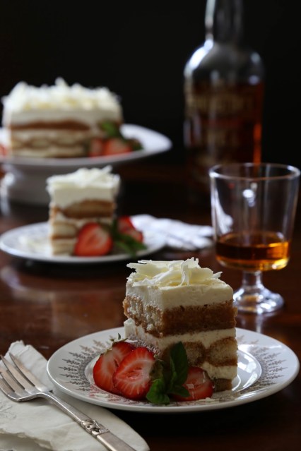 the best type of cookie for this recipe is a true italian savoiardi, a crispy lady finger that soaks up the tea and rye syrup.  finding them in the grocery store can be a challenge but in nashville, i quickly found them at publix.  for best results, make the dessert the day before so that it has time to set and make cutting it into portions for serving.