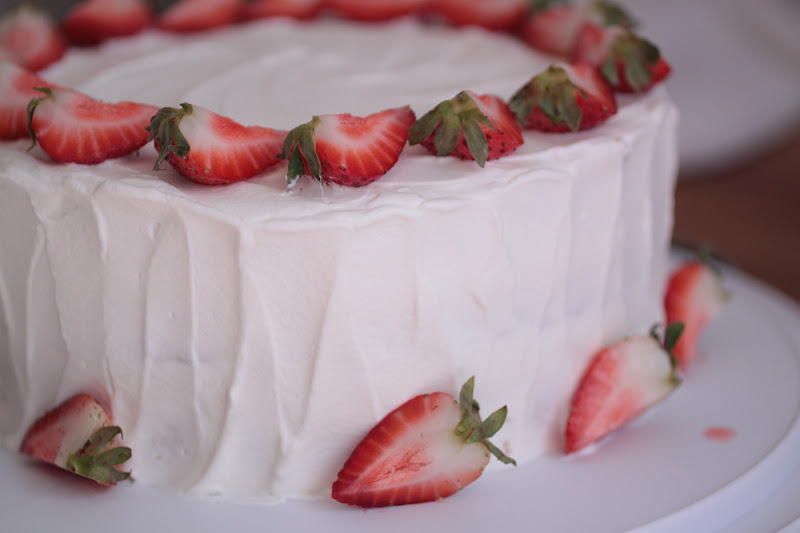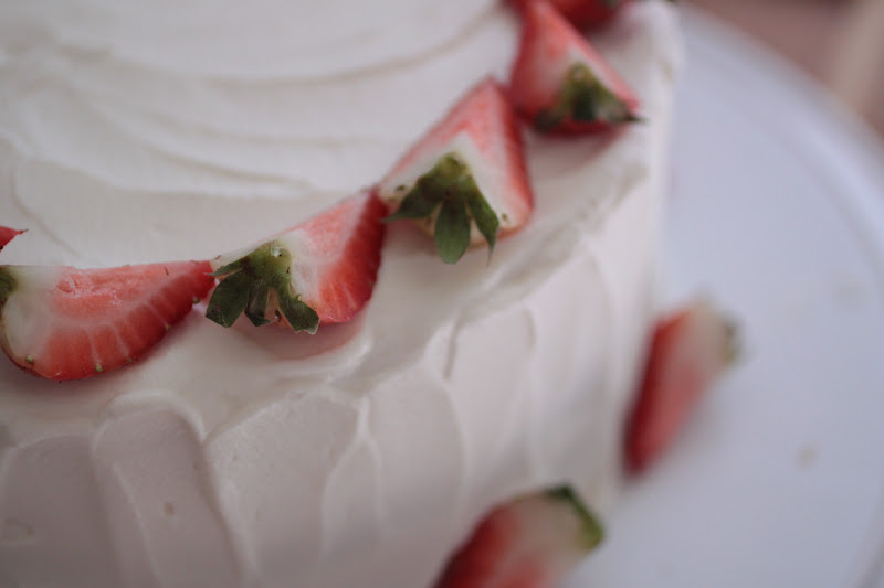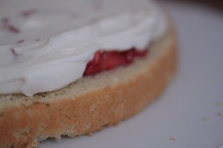 what’s not to love about a cake loaded with strawberries and whipped cream? i can’t think of anything. if you are smart and save the juices strained off of the macerated berries and make strawberry-basil martinis, there is even more to love. so why the frown on my face? one word-genoise. they are so finicky and temperamental to make and i did not have a good time with this one.