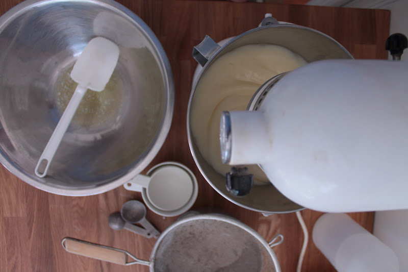we made a simple syrup to soak the cake with. apparently, that is the key to an authentic savarin, lots of syrup soaked up by the cake.