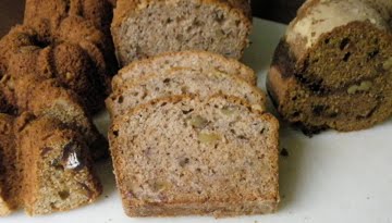 final batch of tea breads. from left to right-date walnut, banana nut and pumpkin chocolate chip with a lovely brown sugar ribbon running through it.
