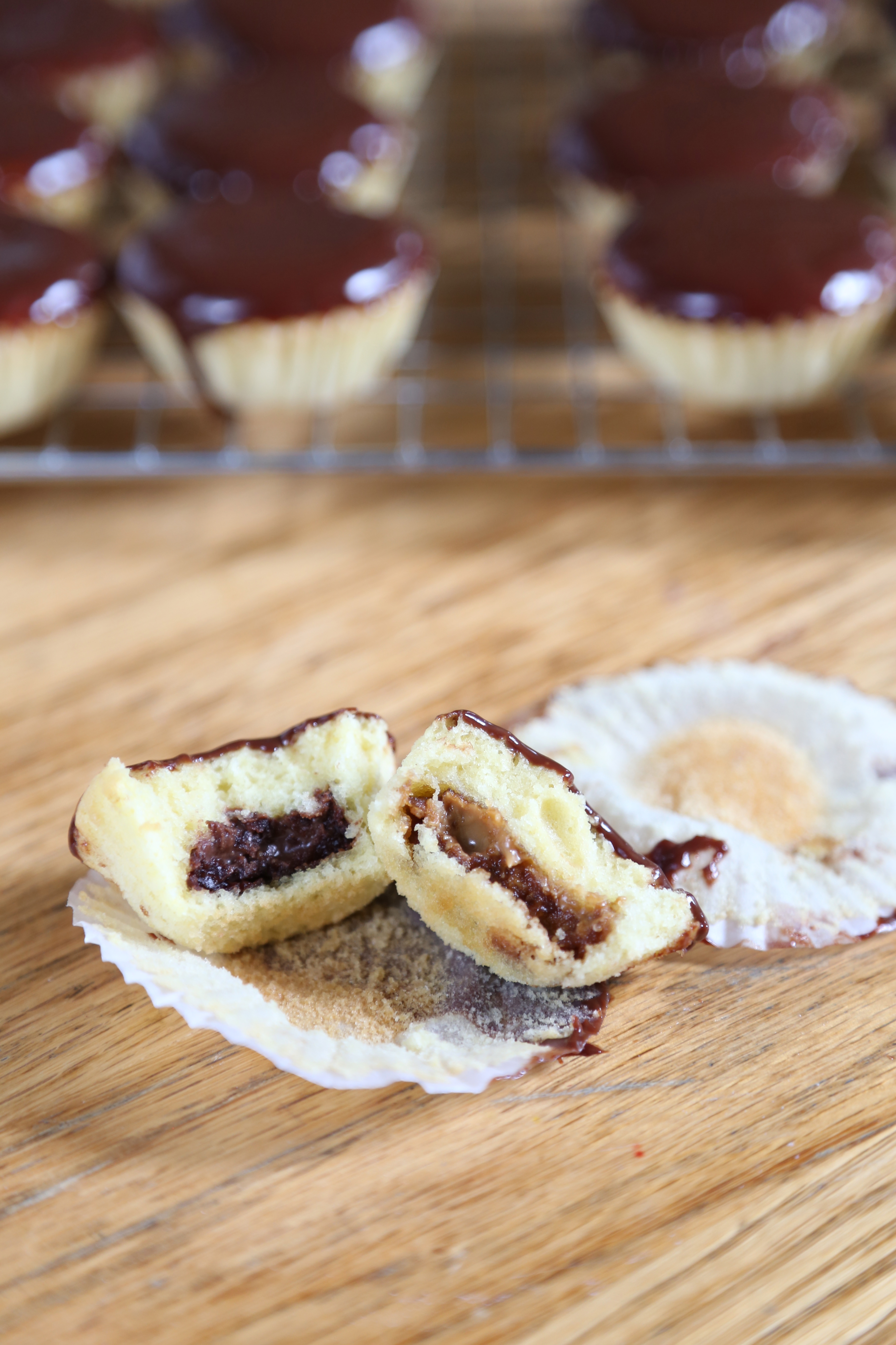 Another Tuesday, another recipe from Baking Chez Moi. This week, we chose to prepare the Nutella Buttons, tiny little cupcakes with a secret filling surprise and a glaze of ganache. What’s not to love? Actually, if you are me, it’s the Nutella. Hard to believe since Nutella is so popular but it just isn’t something I go crazy for. In truth, it is just not the right chocolate flavor for me; I prefer a dark chocolate to a milk chocolate.